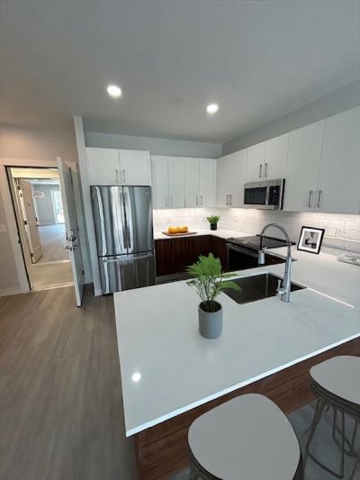 The Residences at Sharon Gallery, a brand new 24-unit boutique community consisting exclusively of one-bedroom and studio apartments. As part of a miniature city development, Sharon Gallery will offer residents the convenience of walking to nearby coffee shops, takeout dining, and hair and nail salons. The building is constructed with steel and concrete for superior insulation, and because all units are located on the top floor, residents will never have to worry about noise from upstairs neighbors.Each sleek, ultra-luxury home features: GE Profile appliances, quartz countertops, generous cabinet space, private all-in-one washer and dryer,...read more